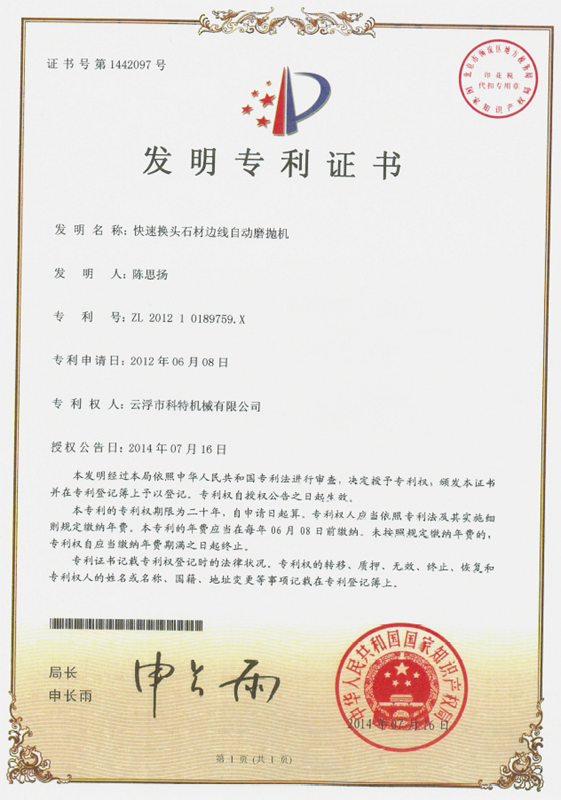 企業(yè)組建了“云浮市石材機(jī)械裝備工程技術(shù)研究開發(fā)中心”,并與高校和科研院所密切合作,致力于光機(jī)電一體化產(chǎn)品的研發(fā)、生產(chǎn)、銷售和服務(wù)。主要產(chǎn)品有框架鋸、全自動連續(xù)磨拋機(jī)、橋式自動切割機(jī)、全自動仿形石線機(jī)、數(shù)控金剛石繩鋸、裁切機(jī)等。產(chǎn)品具有自動化程度高、加工精度高和生產(chǎn)效率高等特點(diǎn)。產(chǎn)品除國內(nèi)銷售外,還出口到歐美、東南亞、韓國、印度、中東、非洲、俄羅斯、澳大利亞等國家和地區(qū),深受用戶好評。“橋式自動切割機(jī)”被認(rèn)定為廣東省高新技術(shù)產(chǎn)品,擁有發(fā)明專利1項、實(shí)用新型專利1項。